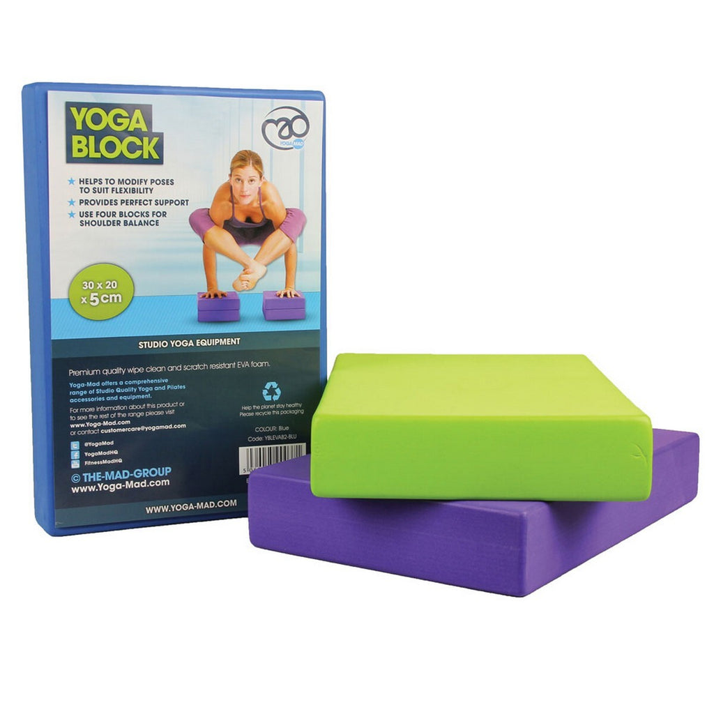 Yoga blocks are a diverse and very versatile prop, they can be used for many poses, from helping provide lift in seated asanas to adding cushioning in shoulder stands or inversions; as well as support for the head. Avoid strain and overstretching with these yoga blocks as they allow you to gain the benefits of the yoga asana with safe and correct alignment. Ideal for use in any yoga class style. These Yoga-Mad blocks are made from high quality, scratch resistant EVA foam with chamfered edges. Normally used in pairs but sold individually, so you can choose to have as many as you require for your yoga practice. These blocks can also be used for Pilates too.
